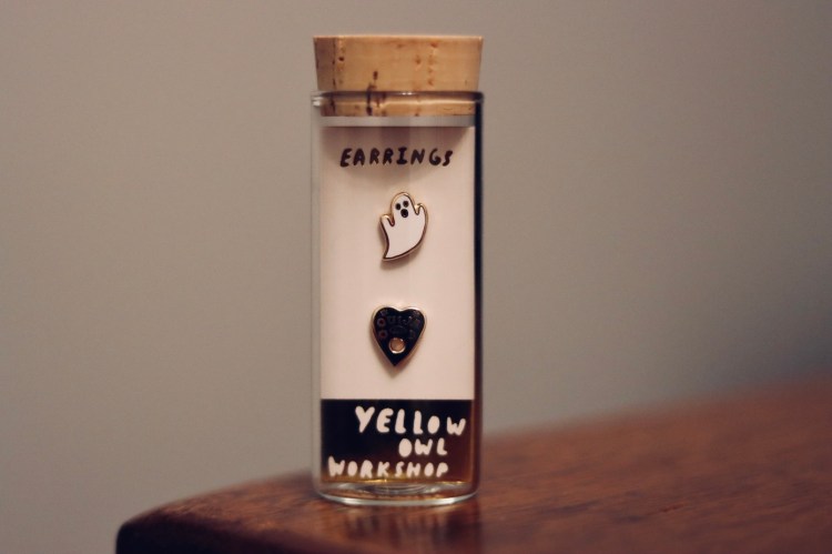 I picked up some fun earrings from Kelly’s Shop in Picton, Ontario, to celebrate the start of Spooky Season. These ghostly adorable studs were made by Yellow Owl Workshop.